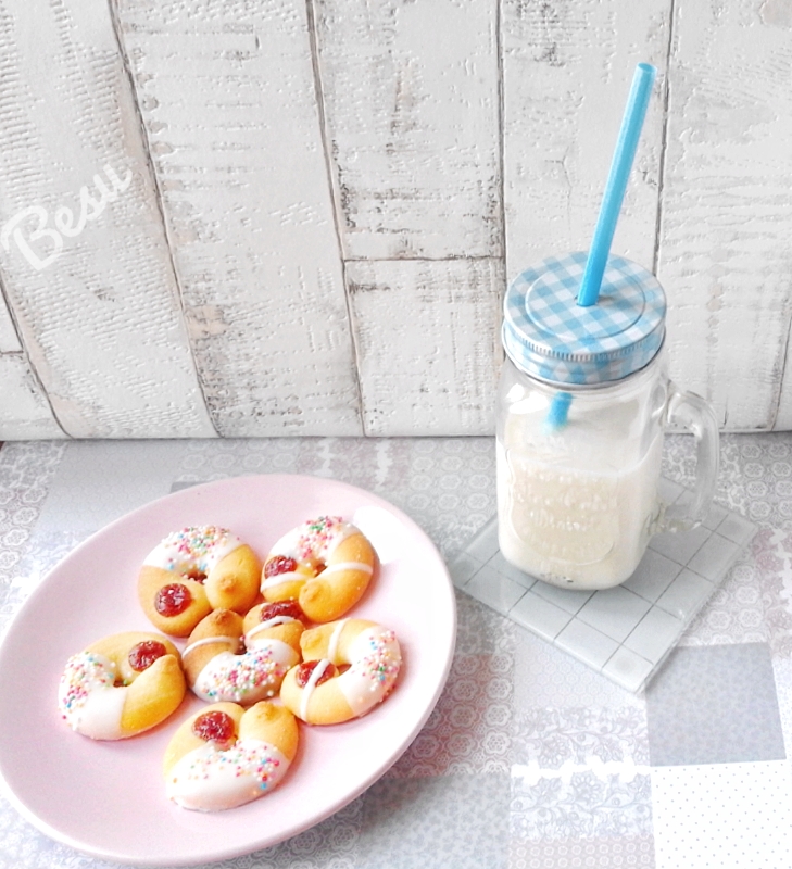 Oprócz śniadanka jeszcze porcja słodkich ciasteczek na lunch:) Też niestety kupne, ale widząc jakie cuda ludzie potrafią wyczarować za pomocą wykrawaczek do ciast i barwników też nabieram ochoty na zajęcie się nowym "słodkim" hobby:)